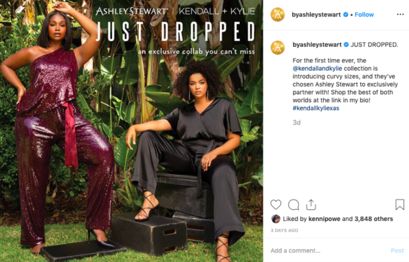 “For the first time ever, the @kendallandkylie collection is introducing curvy sizes, and they’ve chosen Ashley Stewart to exclusively partner with!”