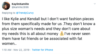 All the deserving plus size influencers and y’all choose Kendall and Kylie… pic.twitter.com/Y1Q2733v2T