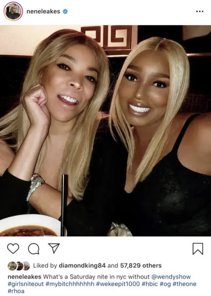 How you doing! Over the weekend (Nov. 23rd), daytime talk host Wendy Williams and Real Housewives of Atlanta star, Nene Leakes spent a girls night out in the New York City streets together. The duo shared their encounter on Instagram with a photo op while they were enjoying dinner. In the photo from Williams, 55, both wore their signature blond hair both parted down the middle. Williams captioned the post: