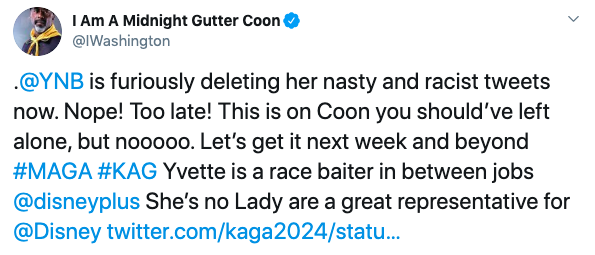 Isaiah Washington responded to the tweet two days later on Thanksgiving (Nov. 28), starting a social media war. He first called her out signing on to the live-action remake of Disney’s Lady and the Tramp. He claimed she called him a “coon” and said she was the one “dancing for dollars” for a