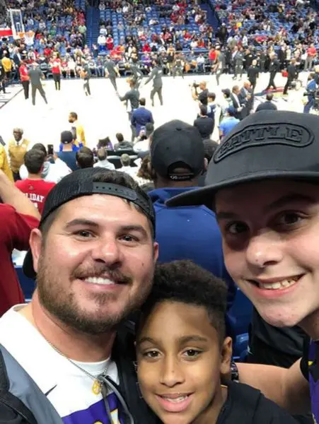 Eli, who was accompanied by his best friend Dallas, and Dallas’s dad Billy, all sat behind the Lakers bench during the game as Eli cheered on his favorite player the whole game.