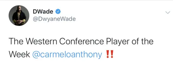 Former NBA star, Dwyane Wade took to Twitter on Monday, sending Melo support in his NBA award.