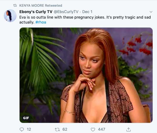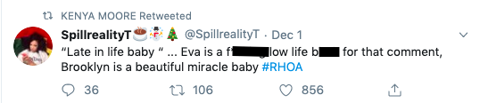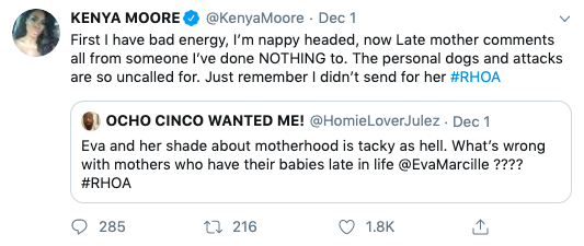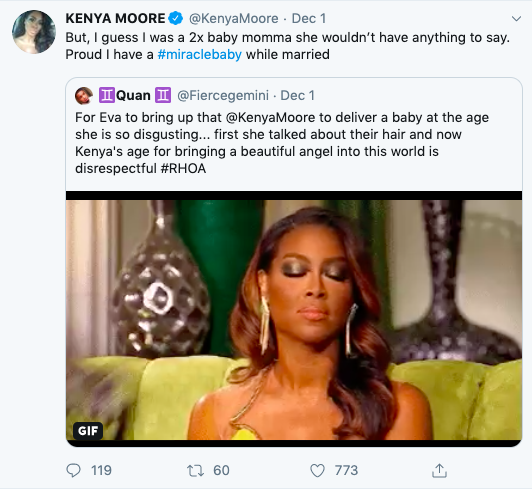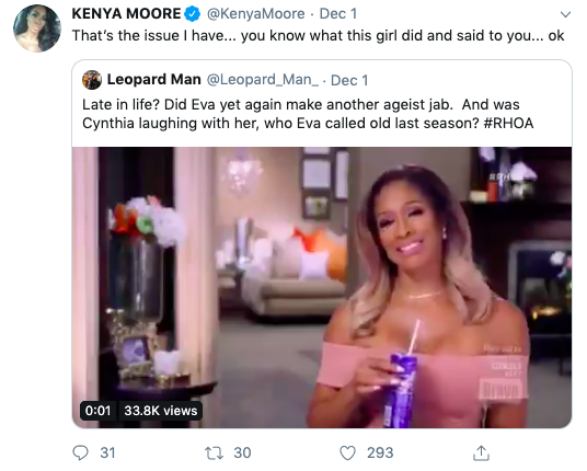 Kenya Moore later took to Twitter to react to Eva Marcille’s comment.