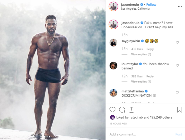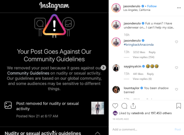 But, Instagram removed the photo after it was reported for nudity. Jason posted the removal notice with the following caption: