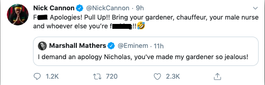 Eminem then seemingly joked that he wanted an apology, but Cannon clearly wasn’t having it.