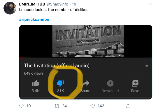Billions of views, your ten cents are two"#ripnickcannon #TheRinger pic.twitter.com/kpqOxyDSlv— Shady Times (@ShadyTimes) December 10, 2019