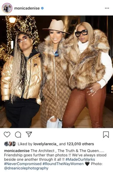 “The Architect , The Truth & The Queen….. Friendship goes further than photos !! We’ve always stood beside one another through it all !! #MadeOurMarks #NeverCompromised #RoundTheWayWomen Photo: @dreanicolephotography”
