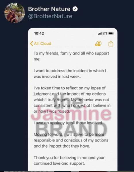 Brother Nature Apologizes After Footage Possibly Shows What Happened Before He Was Beat Up: My Behavior Was Not Consistent With Who I Am