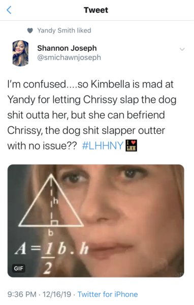 Meanwhile, Yandy liked this tweet questioning why Kimbella is upset with her as opposed to Chrissy, who fought her on national television.