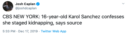 Just hours later, the NYPD released a brief tweet that Karol Sanchez had been found. She was reportedly dropped off at a park and went to a nearby police station where she was reunited with her family. A video of her leaving the station was also released Tuesday (Dec. 17).