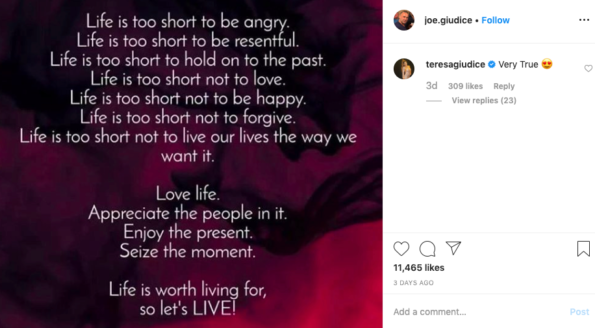 He also shared a message Saturday (Dec. 14), where Teresa left a comment.