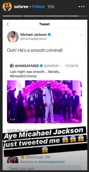 While the King of Pop passed away more than 10 years ago, his Twitter page is still going strong, a clearly a fan of Safaree Samuels’s Michael Jackson impersonation.