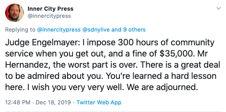 He was initially looking at 47 years behind bars, however, due to his infamous extensive testimony and police cooperation, Tekashi was rumored to have been eligible for immediate release upon his sentencing. But a judge decided against that Wednesday (Dec. 18) and sentenced him to two additional years behind bars, five years of supervised release, 300 hours of community service, and a $35K fine. The Inner City Press official Twitter account detailed the judge’s ruling.