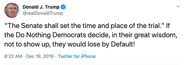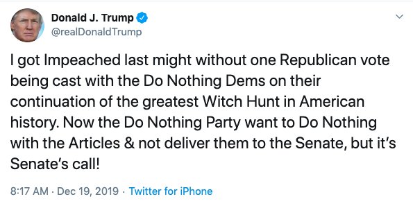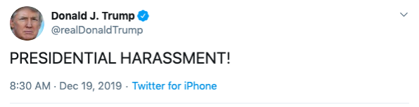 President Donald Trump Is Impeached, He Responds: PRESIDENTIAL HARASSMENT!