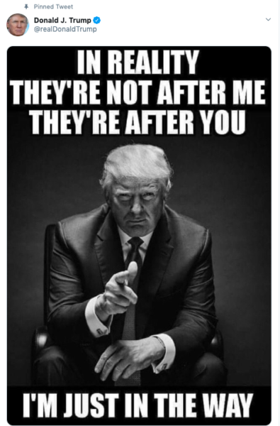 He first said that no Republicans voted for him to be impeached, and seemed to find hope in that. Still, he alluded to suffering Presidential harassment, before pinning a cryptic tweet to the top of his page.