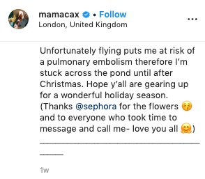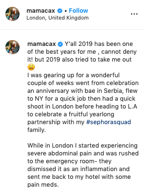 Mama Cax’s unfortunate passing comes just after she gave fans an update about her health battles on Dec. 12, and said she was suffering