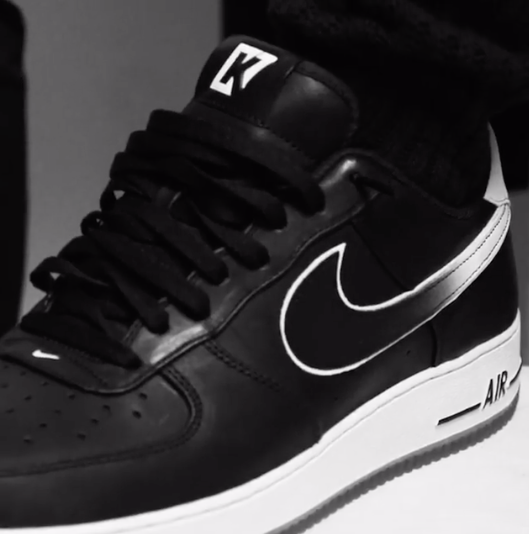 He shared a video on his Instagram page, giving fans a closeup of a pair of all-black shoes that feature Colin Kaepernick’s silhouette (along with his notable afro), and the letter K.