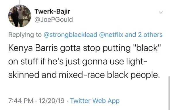 “@JoePGould Kenya Barris gotta stop putting “black” on stuff if he’s just gonna use light-skinned and mixed-race black people.”