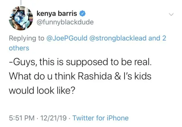 “@funnyblackdude -Guys, this is supposed to be real. What do u think Rashida & I’s kids would look like?”