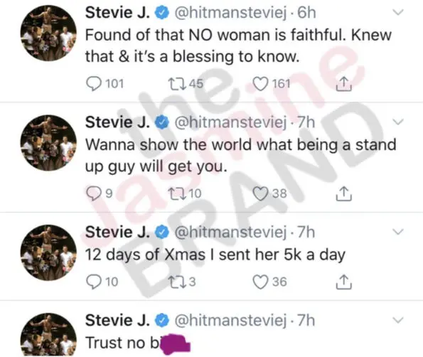 Stevie J Tweets “Trust No B*tch” & “NO Woman Is Faithful” Later Says He Was Hacked: My Wife Is The Love Of My Life