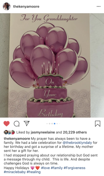 “@thekenyamoore My prayer has always been to have a family. We had a late celebration for @thebrooklyndaly for her birthday and got a surprise of a lifetime.”