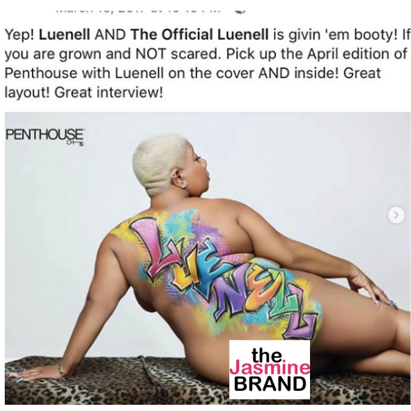 She posted snapshots from her 2017 shoot with Penthouse magazine. Luenell was actually the first African-American full-figured woman over the age of 40 to pose for the publication.