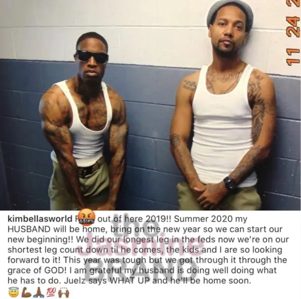 Juelz’s wife and ‘Love and Hip-Hop,’ star Kimbella shares the same photo update of the rapper which appears to have been taken in November from the time stamp. In Kimbella’s caption, the LHH star alleges her man will be released from prison nearly one year ahead of his scheduled release in 2021. Kimbella says,