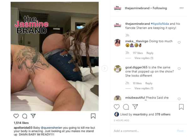 And after being released in July, lovebirds Apollo Nida and Sherien Almufti can’t keep their hands off of each other – in real life and on social media! Apollo recently showed some love to his soon-to-be bride with a shockingly spicy IG shout-out. He posted an usie with her leopard bikini-covered lady parts with the following caption: