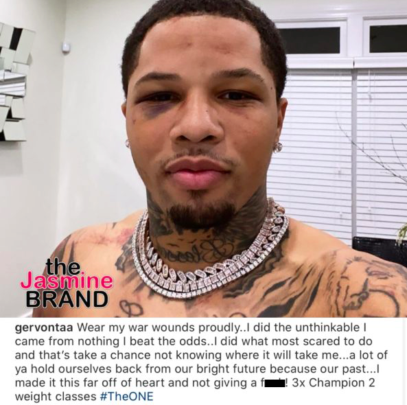 In a second post, Gervonta Davis shared a selfie with an obvious black right eye along with a few cuts from his fight over the weekend. He wrote that he is proud of his wounds from his boxing match.