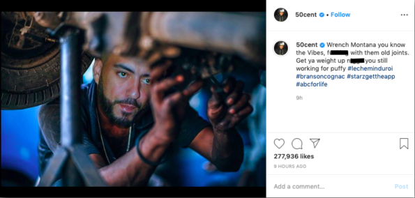 “Wrench Montana you know the Vibes, f—ing with them old joints. Get ya weight up n—a you still working for puffy #lecheminduroi #bransoncognac #starzgettheapp #abcforlife“