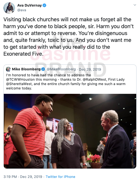 Ava DuVernay wasn’t having it. She fired a warning shot at Bloomberg via Twitter Wednesday ( Jan. 1).