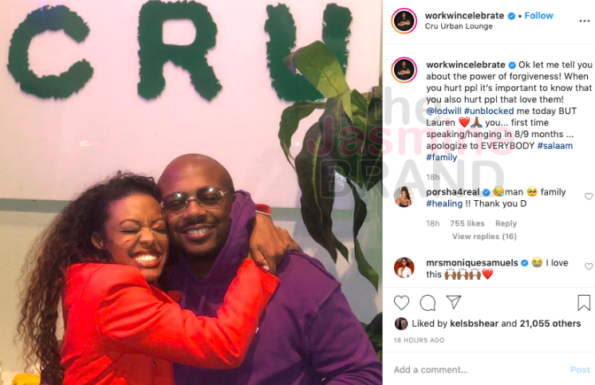 “Ok let me tell you about the power of forgiveness! When you hurt ppl it’s important to know that you also hurt ppl that love them! @lodwill#unblocked me today BUT Lauren you… first time speaking/hanging in 8/9 months … apologize to EVERYBODY #salaam#family“