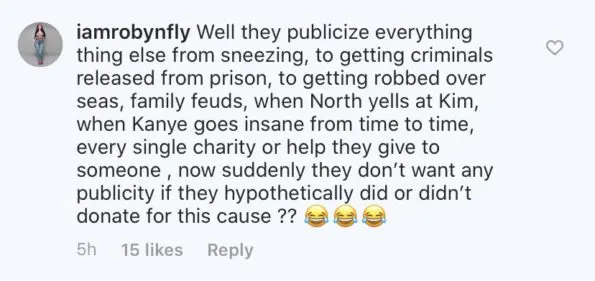 “@KimKardashian nothing gets me more heated than to see people think they know what we donated to and to think we have to publicize everything”