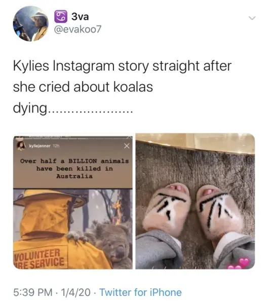 Yikes! One user even accused Kylie Jenner of being more concerned with luxury designer slippers than the nearly-extinct Australian koala bears.
