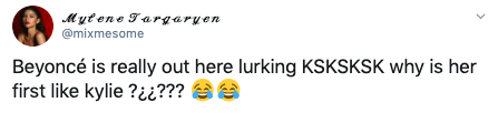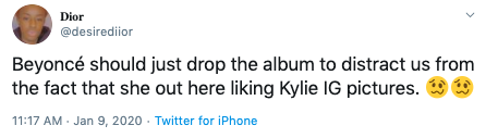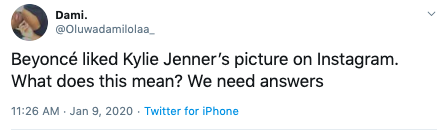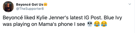 Not Beyoncé liking Kylie’s post on Instagram…. Blue must have been on that account again pic.twitter.com/IyUibgLeHM