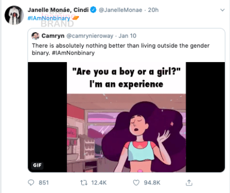 Janelle suggested that she is also non-binary, one who doesn’t identify with the male or female genders and tweeted: