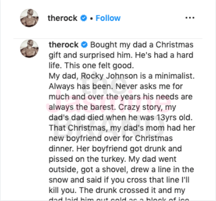 The Rock also gifted his dad with a brand new car for Christmas in 2016.