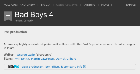 The Internet Movie Database (IMDB) already has Bad Boys 4 listed on its site.