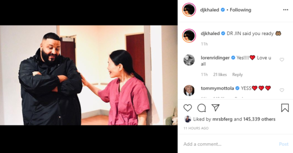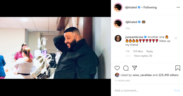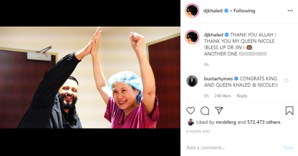Last night, Mr. “We The Best” shared photos from Nicole’s birthing suite, announcing their child’s birth. Their doctor, Dr. Jin, even got in on the social media party! Khaled’s caption read: