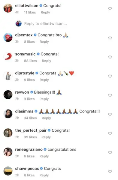 A few of his celebrity friends and collaborators – such as Busta Rhymes, Martin Lawrence, and Chance the Rapper – congratulated the happy father of two in the comments section.