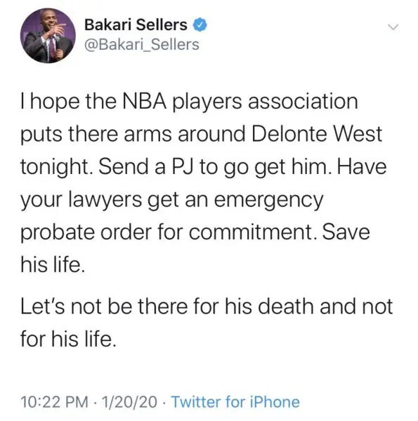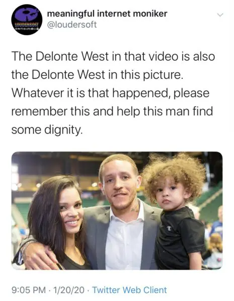 “FORMER NBA PLAYER DELONTE WEST TOOK AN L IN FRONT OF MY TRUCK THIS MORNING…FORMER NBA PLAYER DELONTE WEST MADE SOMEONE [angry emoji]…FROM NBA TO THIS… DELONTE WEST”