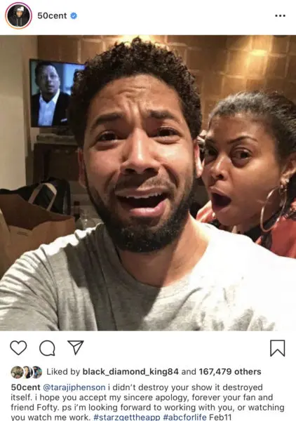 Soon after his first post, 50 added another jab by trolling the Empire star with a photo of former co-star Jussie Smollett. He continues by asking for her forgiveness and offering the Golden Globe winning actress a future role. 50 writes,