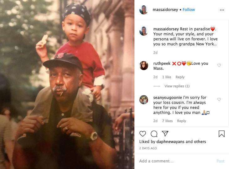 Nia’s oldest son, Massai, also acknowledged his grandfather’s passing. Sharing a vintage father with him he writes: