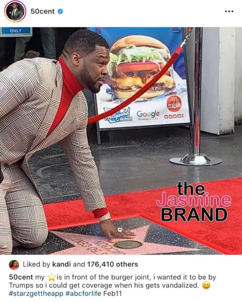 In true 50 Cent fashion, he celebrated his star ceremony by clowning around on social media. The “Power” executive says he wanted his star to be next to President Donald Trump,