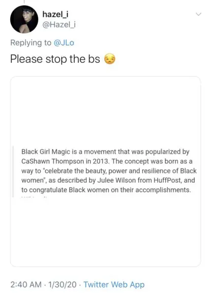 “Black Girl Magic is a movement that was popularized by CaShawn Thompson in 2013. The concept was born as a way to ‘celebrate the beauty, power and resilience of Black women’, as described by Julee Wilson from HuffPost…Please dtop the bs”