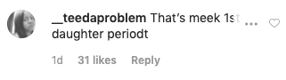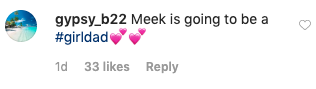 While there were mixed reviews on whether she’s having a boy or a girl, many commented that they were convinced that either way, the baby is Meek Mill’s, who she’s been reportedly dating for months.