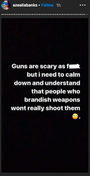Azealia Banks sofreu um ataque racista nesta madrugada, um vizinho apontou uma arma em sua cabeça. Ela postou vídeos chorando no stories e disse: "Preciso chamar a polícia e sei que vão ficar do lado dele, eu sou a única garota negra da rua".