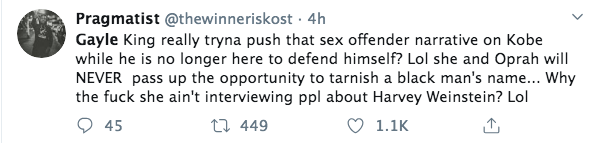Gayle King is facing some backlash over an interview question concerning Kobe Bryant. While interviewing former WNBA star Lisa Leslie, Gayle King asked about the 2003 rape accusation that Kobe Bryant faced.