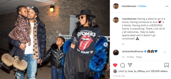 “@mendeecees Having a place to go is a home. Having someone to love is a family. Having both is a BLESSING. Family is everything…”