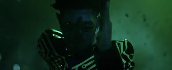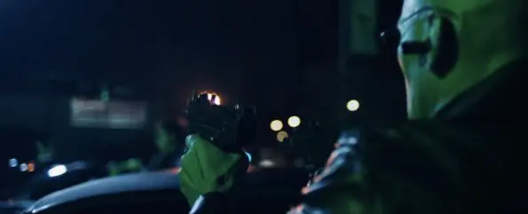 Next, the video takes more from The Matrix, with a dramatic gun down as Lil Nas X takes a red pill, which successfully unlocks his superpowers to save the day and avoid complete disaster.